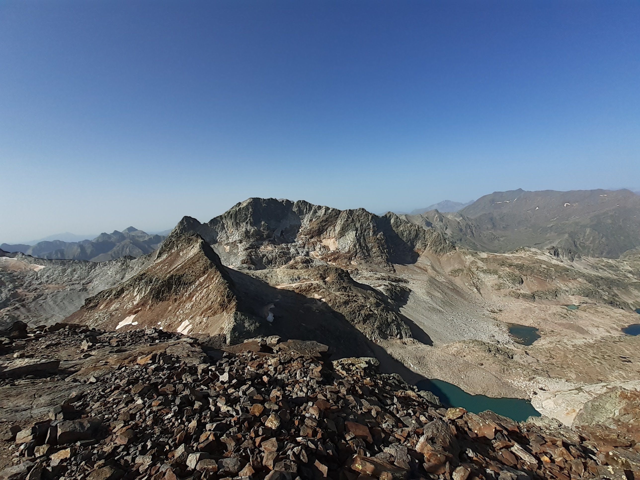 Nada más salir del refugio, coronaremos la Tusse de Montarque, una pequeña cota rodeada de todo este magnífico circo glaciar en el cual nos encontramos. Ya tendremos a la vista los dos objetivos del día, el Gourdon y el Spijeoles. Descenderemos unos metros hasta el collado del pluviómetro y atravesaremos hasta el collado del Gourgs Blancs, asomando ante nosotros el valle de Caillauas, un entorno de lo más salvaje del Pirineo. Ascenderemos por la ladera hasta coronar su espectacular cima disfrutando de unas vistas increíbles.