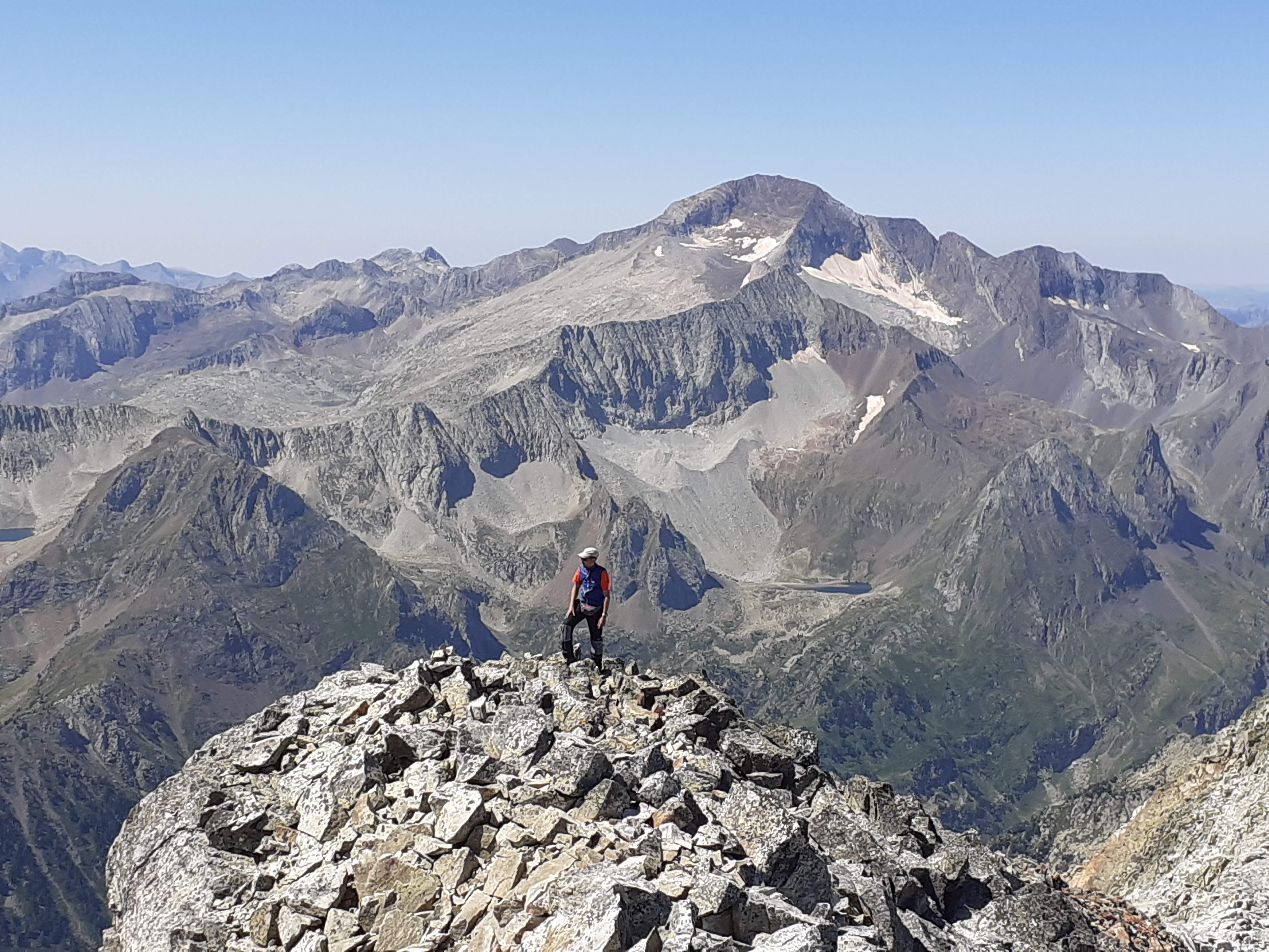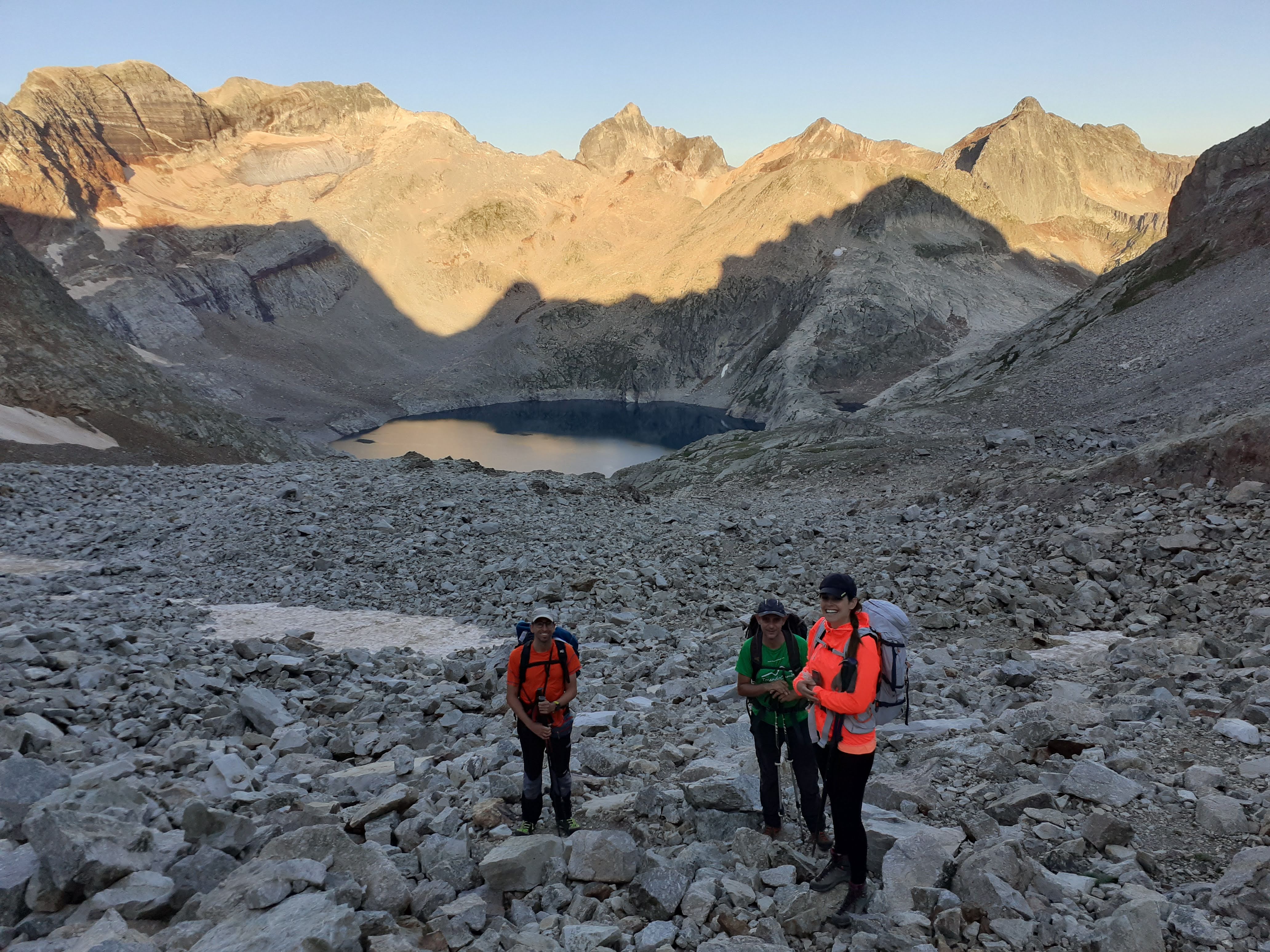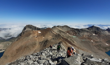 Último día de nuestro trekking de ascensiones. Nos enfrentaremos a la cima principal del macizo, el Perdiguero. Bordeando el lago de Oô, accederemos al collado Superior de Literola por un terreno de piedra suelta, algo incómodo. Para acceder a la cima del Perdiguero, lo haremos por su Cresta Norte, de fácil acceso pero que requerirá el uso en algún punto de nuestras manos. La cima, una gran mole de granito, nos ofrecerá las mejores vistas del macizo de las Maladetas y del Posets, muchos ibones y nuevos valles que acentuarán nuestras ganas de querer surcar y conocer el Pirineo. El descenso, lo realizaremos por el valle de Literola para finalizar así esta travesía por esta zona del Pirineo tan salvaje.