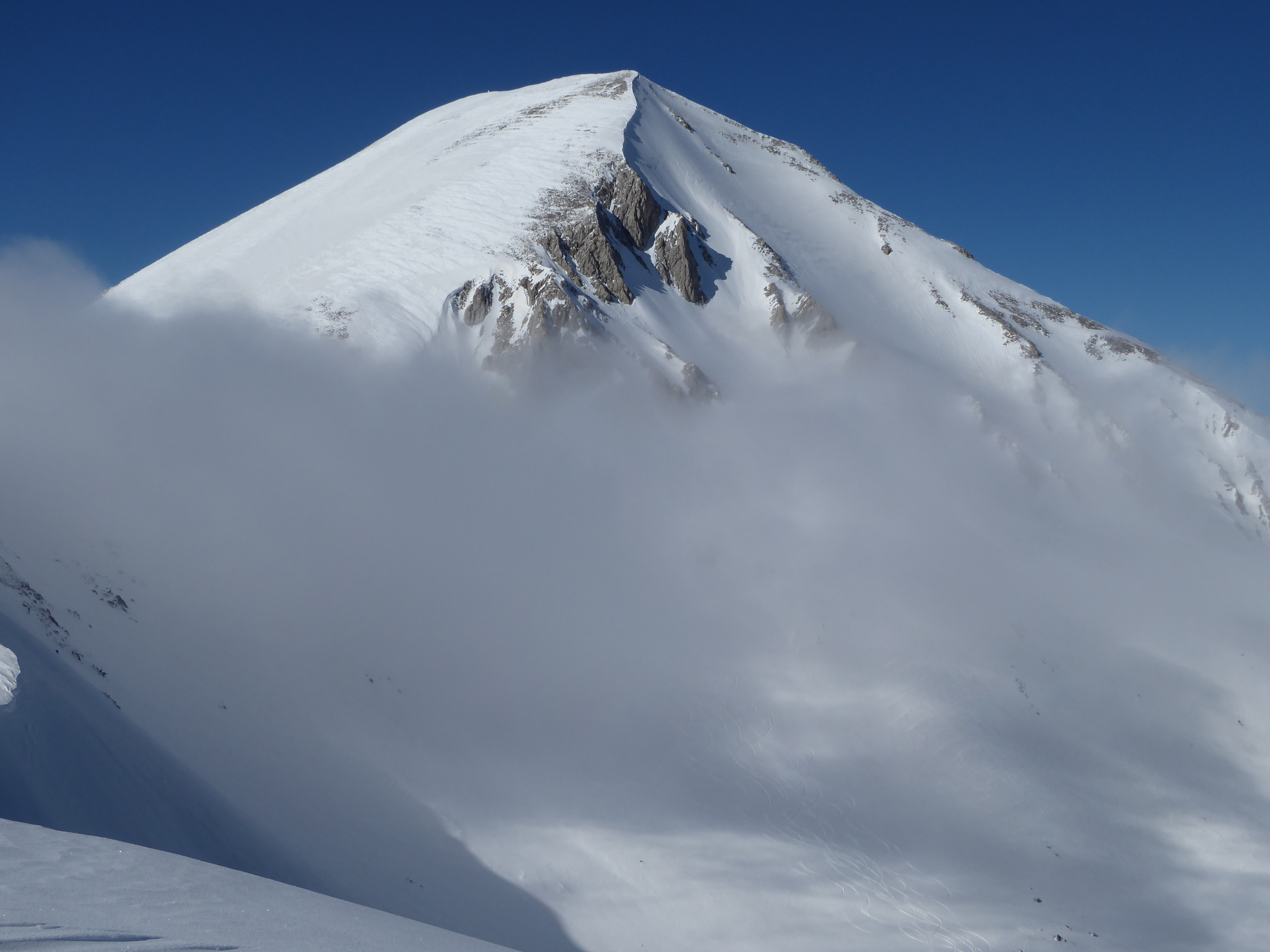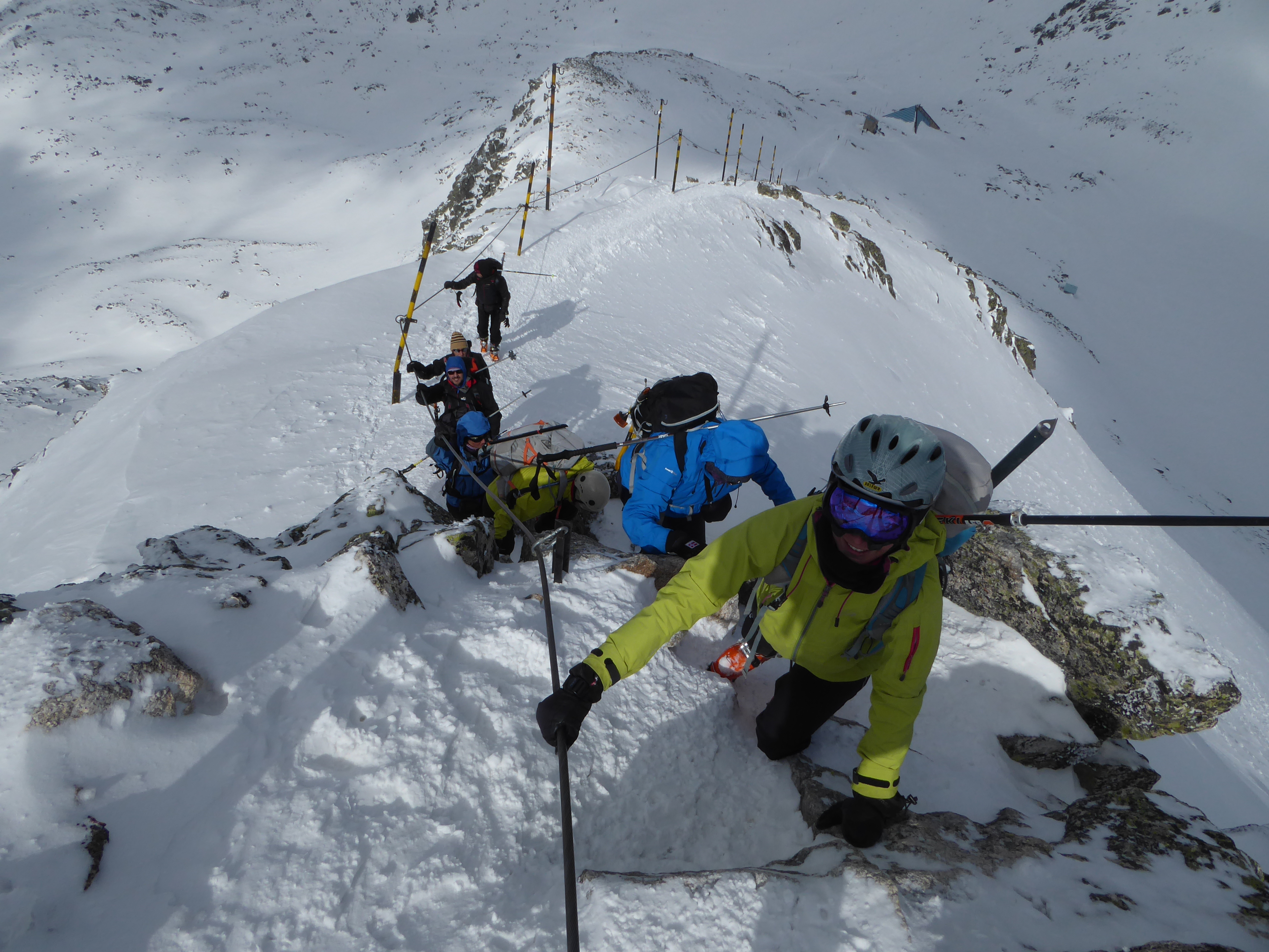 Los últimos metros de la ascensión está equipado con grandes estacas y una maroma facilitando enormemente la progresión hasta la cumbre.
