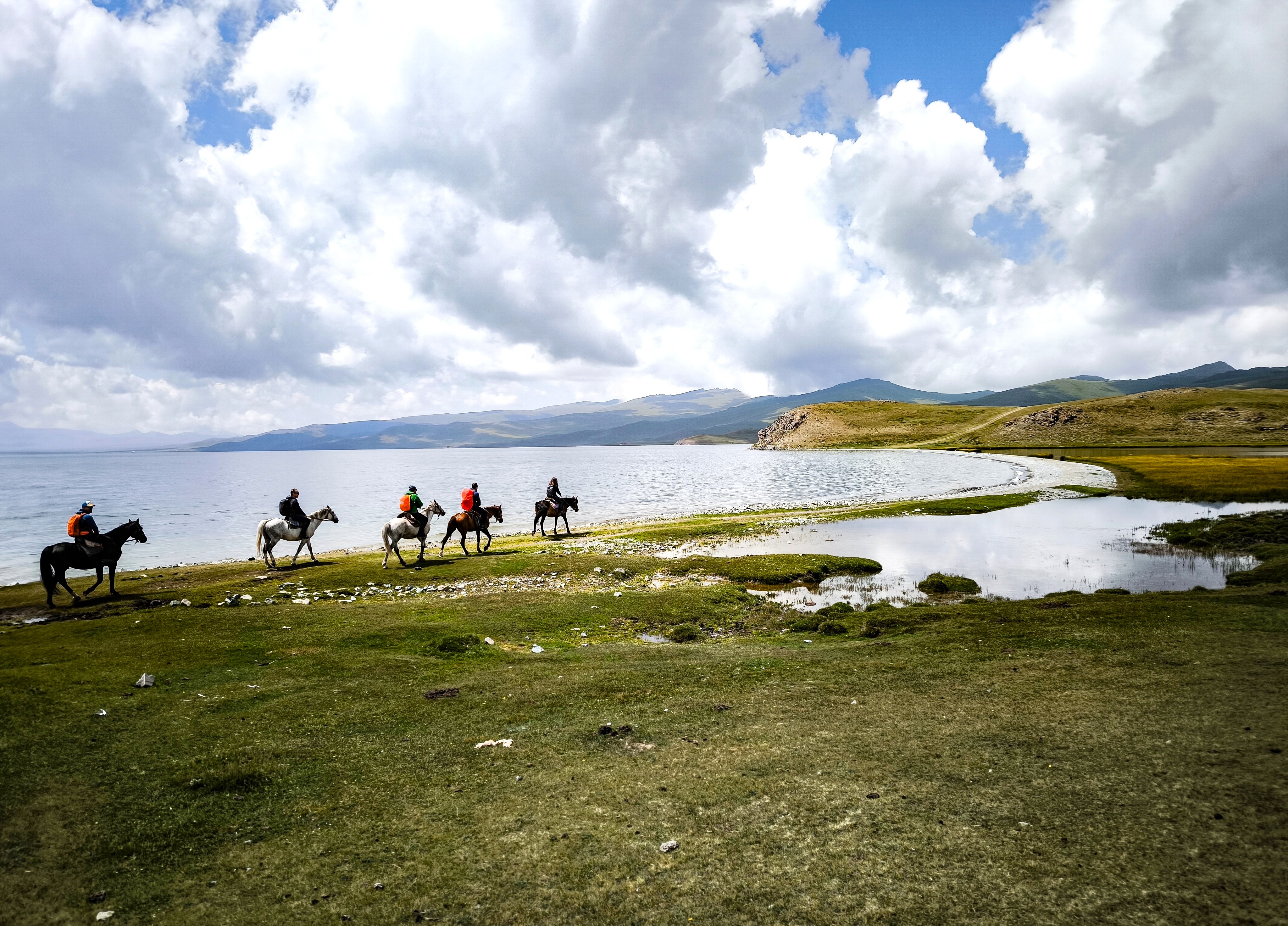 Después del desayuno en el campamento de yurtas, nos prepararemos para montar a caballo y vivir una experiencia genuina en este impresionante entorno natural. El caballo ha sido tradicionalmente el principal medio de transporte de los pastores nómadas de Kirguistán y sigue ocupando un lugar esencial en la identidad y la cultura kirguisa. El paseo, de unas 2 a 3 horas, discurrirá primero junto al lago y continuará con la subida a alguna colina cercana, desde donde podremos contemplar amplias panorámicas del paisaje, antes de regresar al mismo campamento.