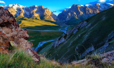 Una vez en el campamento de Kok-Kya, almorzaremos y, por la tarde, realizaremos una caminata corta hasta un collado desde el que se obtienen vistas espectaculares de montañas, glaciares, imponentes paredes rocosas, extensos pastizales y la estrecha hendidura por la que el lago Kel Suu se abre paso hacia el valle.