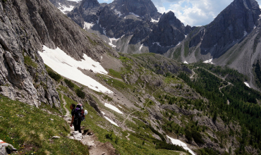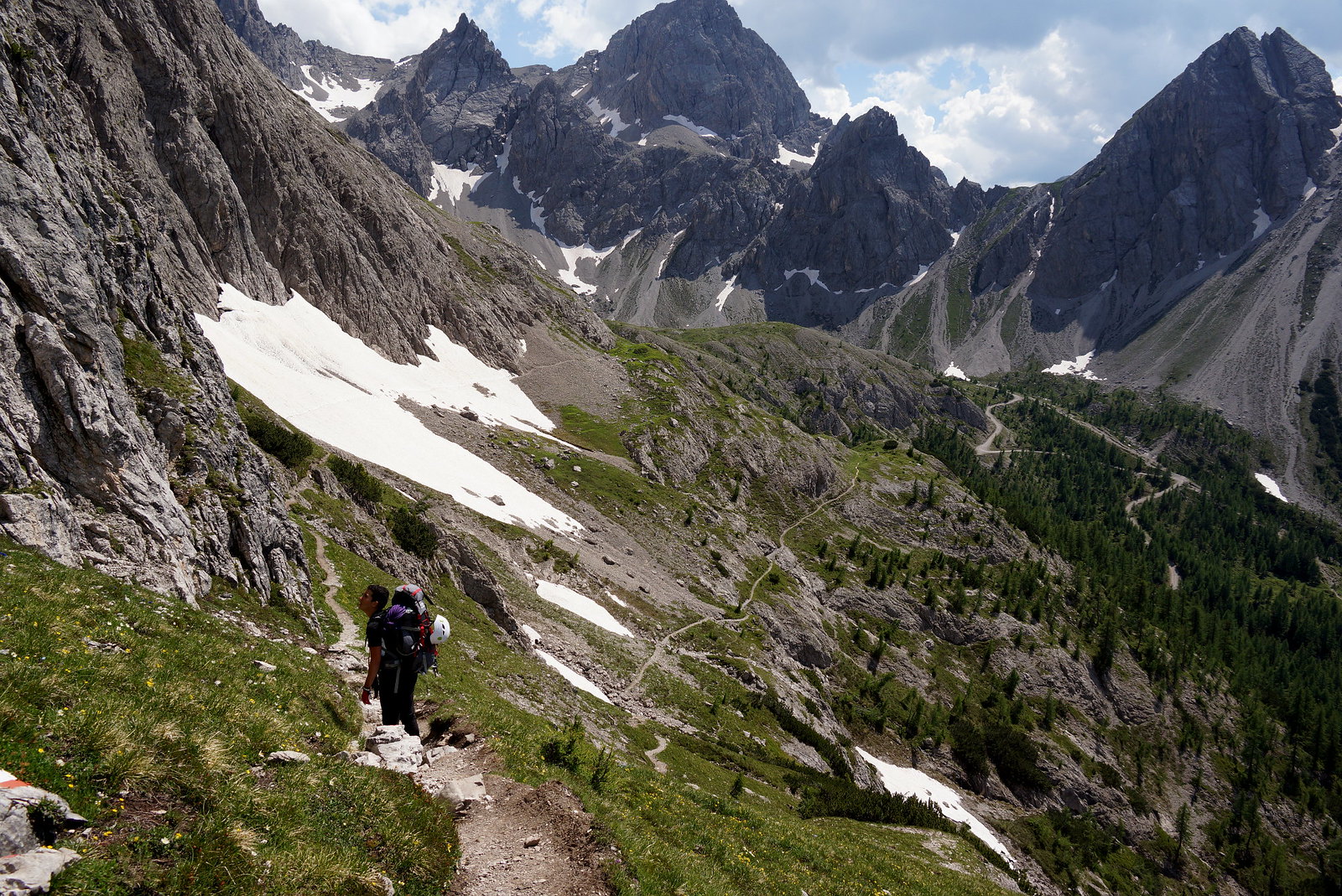 Nuestra ruta de hoy difiere del resto de las del viaje. Dejaremos las altas montañas alpinas, con sus grandes bosques de abetos y glaciares y nos trasladaremos al conjunto dolomítico de Lienz. Tras llegar hasta el Refugio Dolomiten, seguiremos una senda que en continuo pero de manera suave nos adentrará al corazón de estas montañas dolomíticas. Poco a poco iremos ganando altura hasta llegar al refugio Karlsbader situado junto al lago Laser y bajo las impresionantes agujas dolomíticas del Grose Sandspitze (2.770 m).