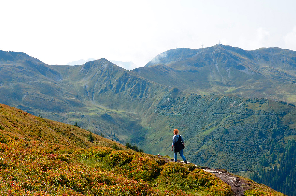 La Pinzgauer Spaziergang es probablemente la mejor ruta de los Alpes Kitzbühel, y se extiende desde Mittersil, en el oeste, hasta el lago alpino de Zell am See, situado en el este. El recorrido, de 32 kilómetros, es demasiado largo para realizarlo en un día, por ello realizaremos la parte más cercana a la ciudad de Saalbach, donde tomaremos un telecabina que nos permitirá salvar parte del desnivel y acceder al famoso recorrido en su parte más bella, a los pies de la cima Ost, que con sus 2.018 m domina todo el valle de Vorderglemm. Seguiremos por la zona alta del recorrido pasando por pastizales alpinos donde por estas fechas abundan flores alpinas de todos los colores. Seguiremos nuestro camino con estupendas vistas de los Alpes de Kitzbüheler para terminar en las proximidades