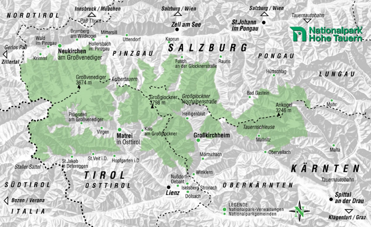 El PN Hohe Tauern es el más extenso de Austria y de toda Centroeuropa. Su origen es realmente curioso: el núcleo central fue adquirido por una asociación de naturalistas en 1913 por su belleza paisajística, y tras sucesivas ampliaciones, fue declarado parque nacional en 1971. Posee una gran diversidad de biotopos, desde los de alta montaña hasta los típicos de los fondos de valle, con una amplia variedad de cañadas, gargantas, arroyos y cascadas, glaciares y lagos de montaña. En su horizonte se acumulan más de 300 picos de 3.000 m y algunos que superan esta cifra ampliamente. Hohe Tauern puede transcribirse en castellano como los grandes pasos de montaña. Y grandes son también sus famosas cataratas de Krimml, con tres saltos sucesivos, que aún no siendo tan altas como las de Gavarnie sí son las más caudalosas de toda Europa. Y los superlativos siguen con el glaciar Pasterze, el más grande de todos los Alpes, que se encuentra a los pies del pico Grossglockner.