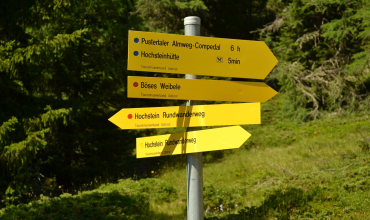 Desde Lienz, ascenderemos por una estrecha carretera que nos conduce hasta el estacionamiento de Hochsteinhütte, donde comenzaremos la breve excursión. Nuestro objetivo será el pico de Böses Weibele, situado en un entorno impresionante en pleno Dolomitas de Lienz. Seguiremos en todo momento el cordal principal de estas montaña hasta alcanzar su cumbre, la panorámica aquí es espectacular: un mar de montañas nos rodea pudiendo avistar el Grossglockner, el Hochschober y, en un día despejado, incluso Venecia.