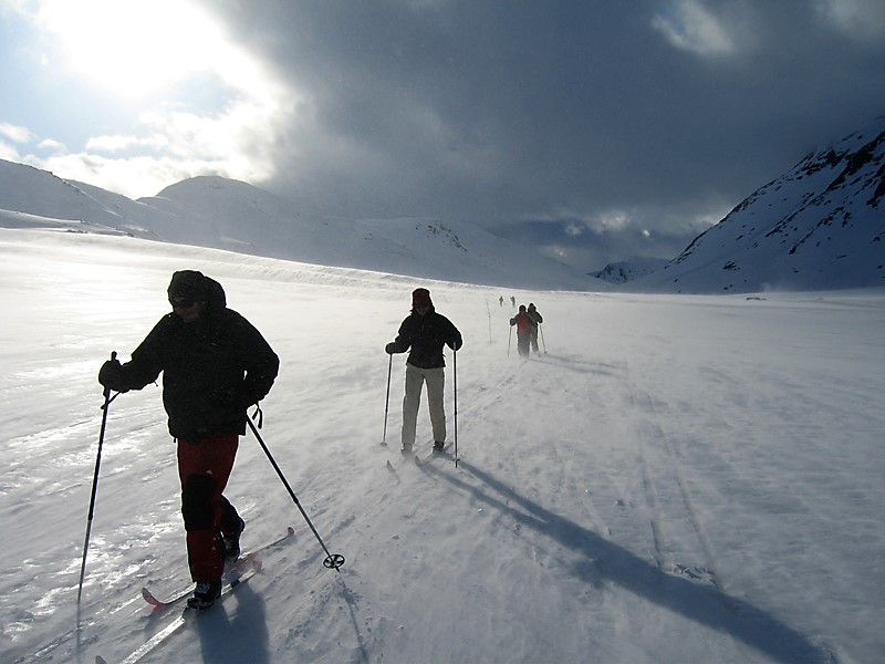 Las rutas que haremos no están pisadas por máquina; solo la huella de los que hayan pasado antes nos ayudará. Para hacer esta travesía necesitas un buen nivel físico y experiencia previa en Esquí de Fondo. Y sobre todo, espíritu de aventura y muchas ganas de hacer kilómetros por los maravillosos parajes de este salvaje rincón de Noruega. Llevaremos todo nuestro equipo encima así que conviene ser muy rigurosos con el peso. El hecho de no tener que transportar ni saco de dormir ni comida nos ayudará a ir ligeros.