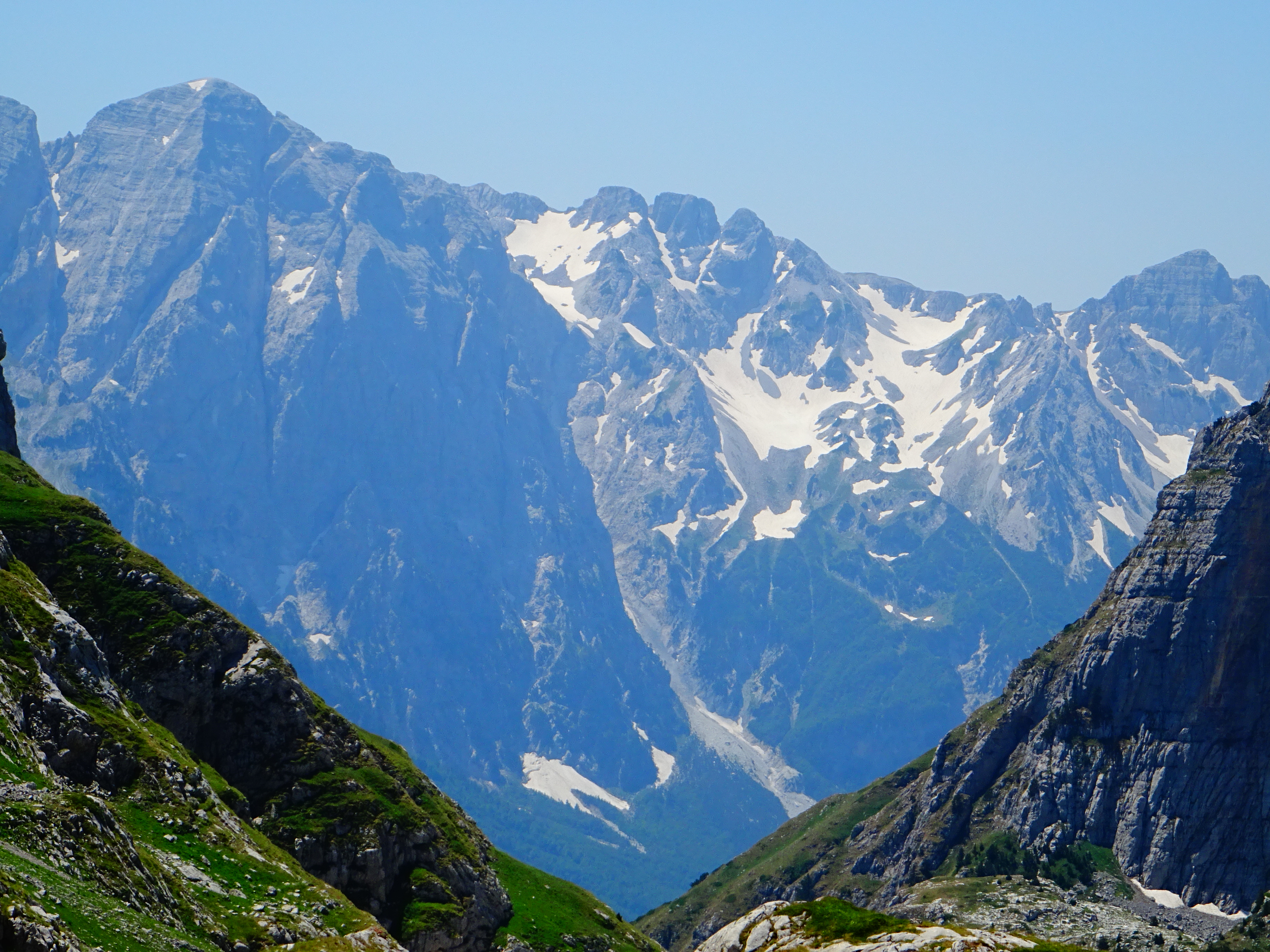Los Alpes Dináricos forman una cadena de 650 km que corre paralela al Adriático desde Eslovenia hasta Albania. En su extremo meridional, el que atraviesa este trekking, el karst de caliza domina el paisaje: paredes verticales de roca blanca, dolinas abisales, cañones donde el río desaparece bajo tierra para renacer kilómetros después. El Prokletije («las Malditas», en albanés) es el macizo más salvaje de todo el arco: sus cimas superan los 2.600 metros y sus valles estuvieron inaccesibles hasta hace apenas dos décadas.