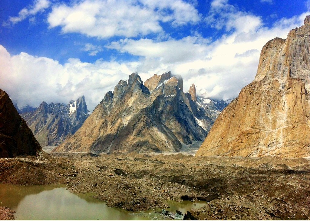 El trekking hasta este lugar, siguiendo el curso del rio Braldo, transcurre en una sucesión de paisajes abruptos con impresionantes glaciares y gigantescos y majestuosas montañas. Pese a lo salvaje del terreno y transcurrir por terreno glaciar, es un trekking de jornadas cómodas, donde se salvan desniveles humanos y se aclimata muy bien.