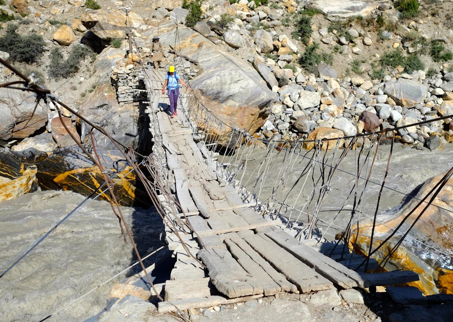 Nuevas montañas van apareciendo en nuestro horizonte, como el macizo de los Masherbrum (7.821 m) vigésimo cuarta montaña más alta del mundo. Un terreno árido, el cual el río y los glaciares se preocupan de modelar a su antojo, transportando cantidad de sedimentos río abajo.