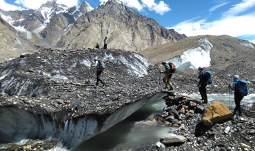 Comenzaremos propiamente dicho el trekking del Baltoro, rodeados en todo momento de enormes montañas en un perfecto valle en “U”. Atravesaremos 2 importantes valles, afluentes del Baltoro, que vienen de montañas tan emblemáticas como el Latok de 7.145 m y el Braintha Brakk con 7.285 metros.