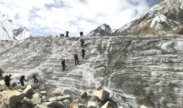 Desde Concordia, nos adentraremos en el glaciar Godwin Austen, teniendo el K2 presente siempre al fondo. Atravesaremos el campo base del Broad Peak y más adelante el santuario de la gente que falleció en el K2. Un lugar sobrecogedor. Una vez en el campo base, tendremos la verdadera dimensión de esta montaña que tiene una prominencia de más de 3.000 metros casi en la vertical desde donde nos encontramos. La vuelta la realizaremos por el mismo itinerario para descansar de nuevo en Concordia.