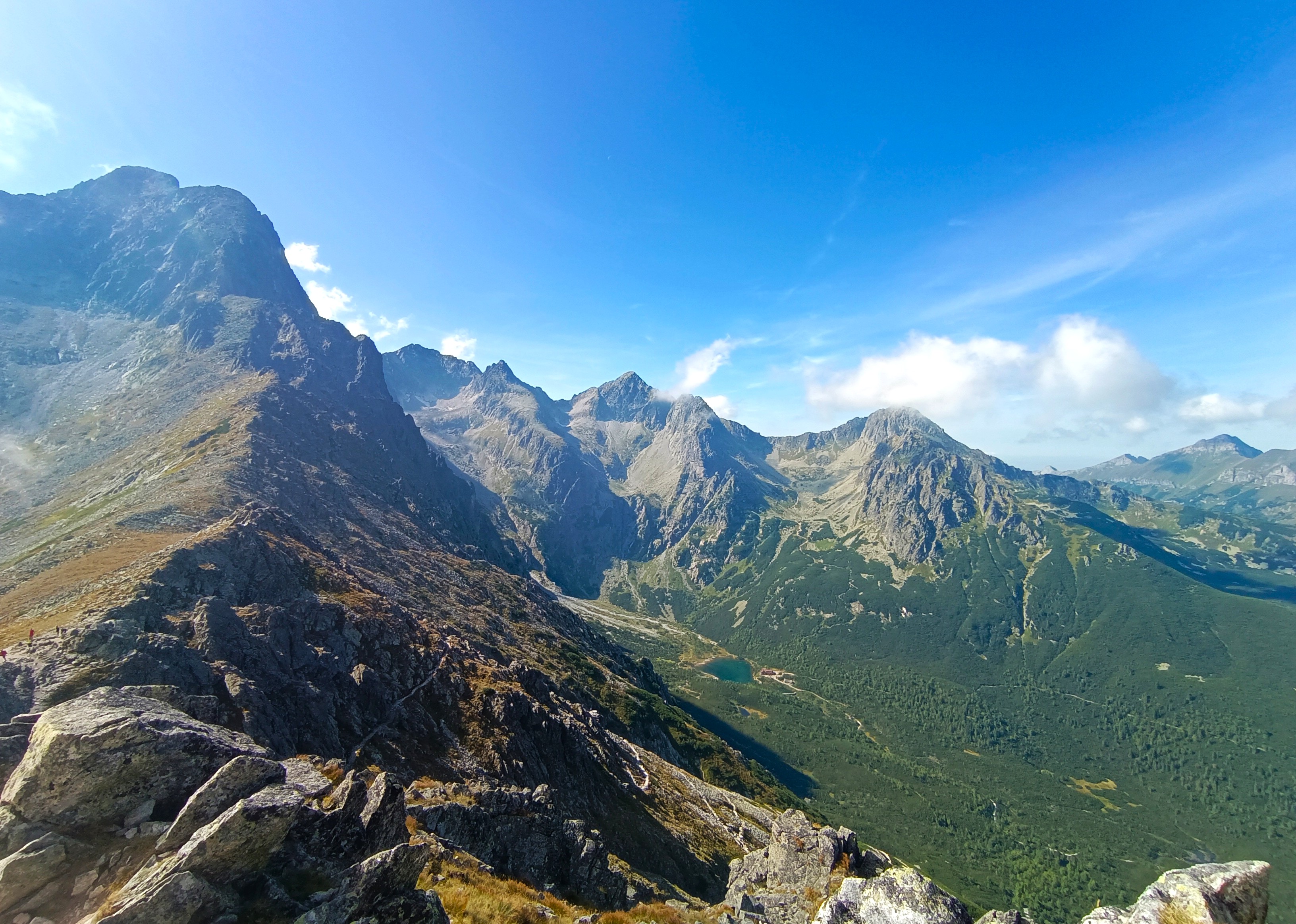 Saldremos del refugio por el valle Dolina Pięciu Stawów Polskich, recorriendo la vertiente norte de varios lagos de montaña. El sendero gira hacia el norte y nos conduce hasta el collado Zawrat (2.159 m), desde donde se abren impresionantes vistas de los circos glaciares y las cumbres circundantes.