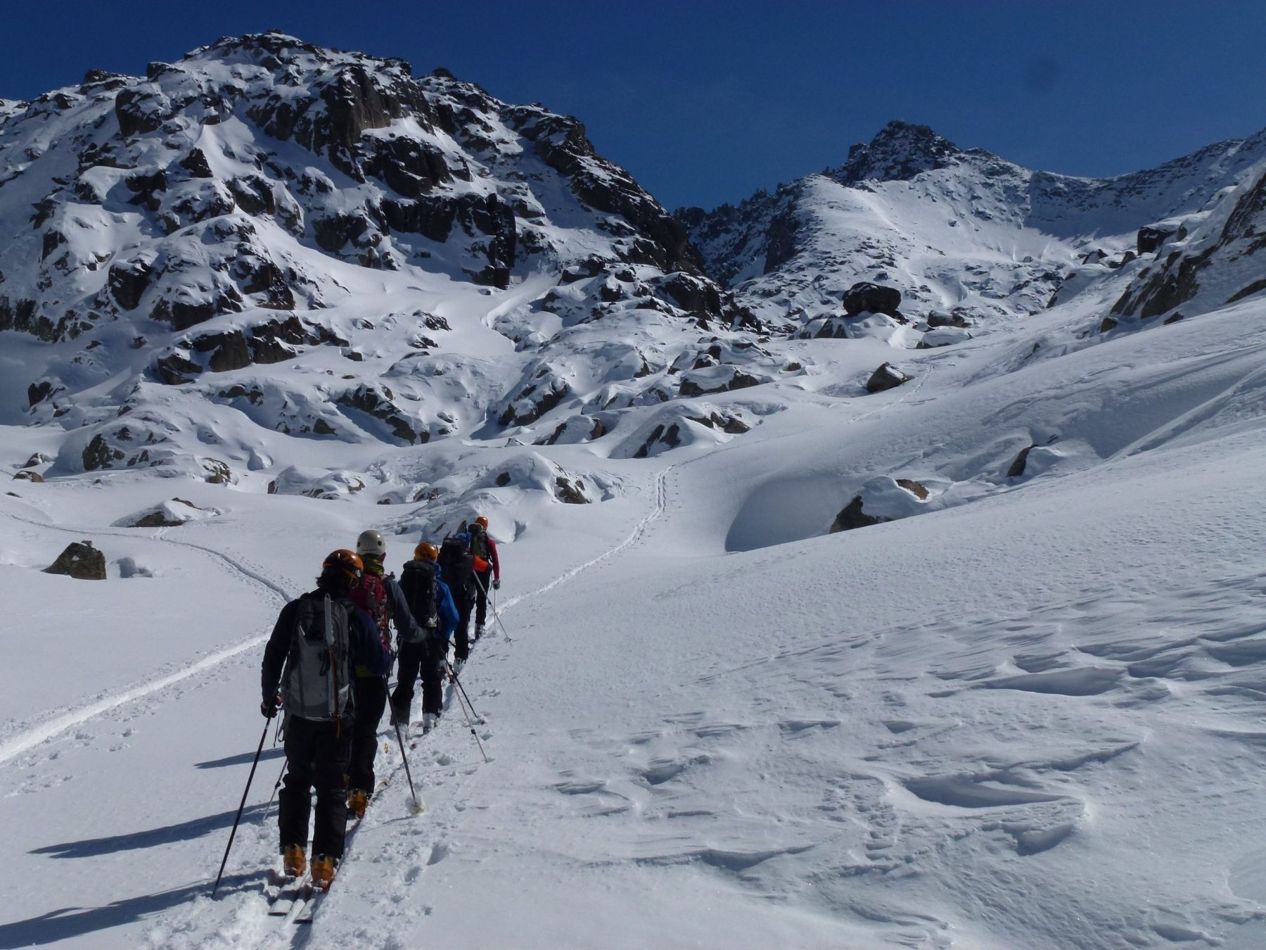 Presentamos una travesía de esquí de montaña de 4 días de duración durmiendo en el refugio de Colomers y d´Amitges. Conoceremos las montañas del valle de Arán y del “Parc Nacional d'Aigüestortes i Estany de Sant Maurici” ascendiendo a varias cumbres y bajando por hermosos valles salpicados de ibones. Entraremos a este itinerario por el valle de Arán y tras un recorrido circular regresaremos al mismo punto de partida. El Parc Nacional d'Aigüestortes i Estany de Sant Maurici atesora todos los elementos que caracterizan la alta montaña pirenaica, pero el agua es el gran protagonista, ya sea en forma de nieve, ríos, cascadas o lagos. Su variada orografía está salpicada de cómodos refugios guardados, el de Restanca y el d´Amitges entre otros, y de emblemáticos picos como el Montardo (2.833 m), Punta Alta (3.014 m), el Tuc de Saboredo (2.833 m) o el Tuc de Ratera (2.862 m).