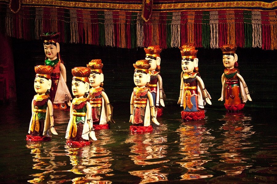 Más adelante, asistiremos a una presentación de Marionetas Acuáticas Tradicionales, una expresión artística profundamente arraigada en la vida rural del norte de Vietnam. Esta antigua forma de teatro, considerada patrimonio cultural inmaterial, refleja la conexión del pueblo vietnamita con la naturaleza y la vida cotidiana de los agricultores del delta del río Rojo.