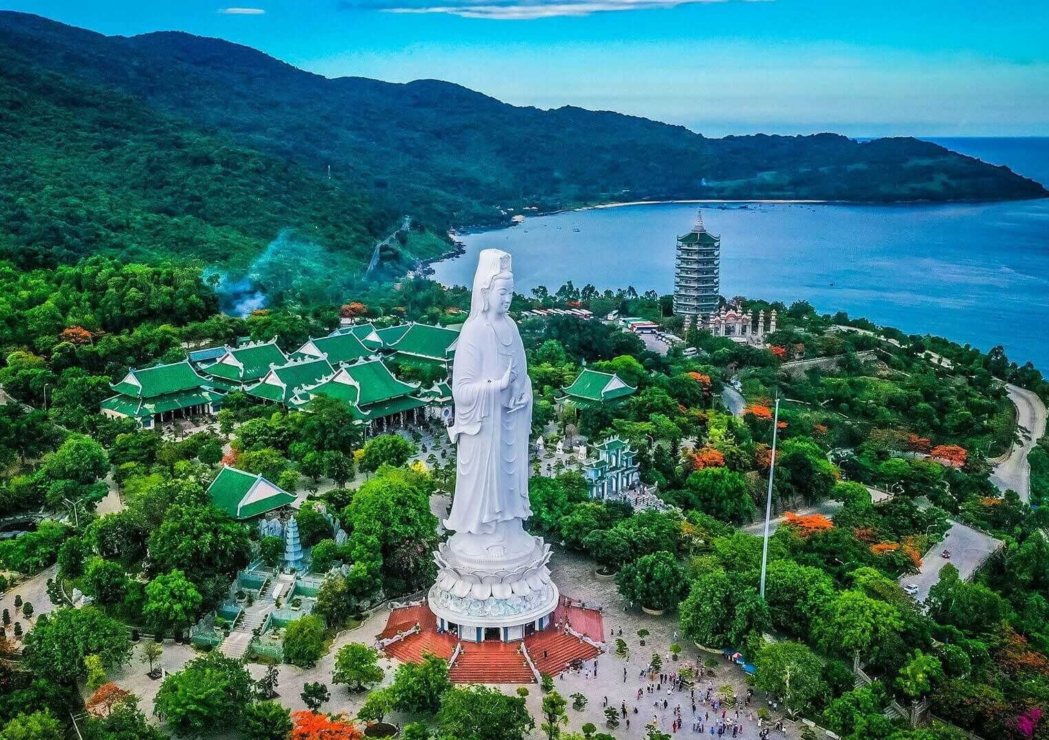 Alejada del bullicio urbano de Da Nang, la península de Son Tra, también conocida como la “Isla de los Monos”, nos ofrecerá una experiencia única en plena naturaleza. Desde sus miradores, podremos disfrutar de impresionantes panorámicas de la costa central de Vietnam, con paisajes que combinan mar, selva y cielo en perfecta armonía. Además, con un poco de suerte, tendremos la oportunidad de observar a uno de los habitantes más especiales de esta reserva: el langur douc de patas rojas, una especie endémica y en peligro de extinción, de la que apenas quedan unos 350 ejemplares en libertad.