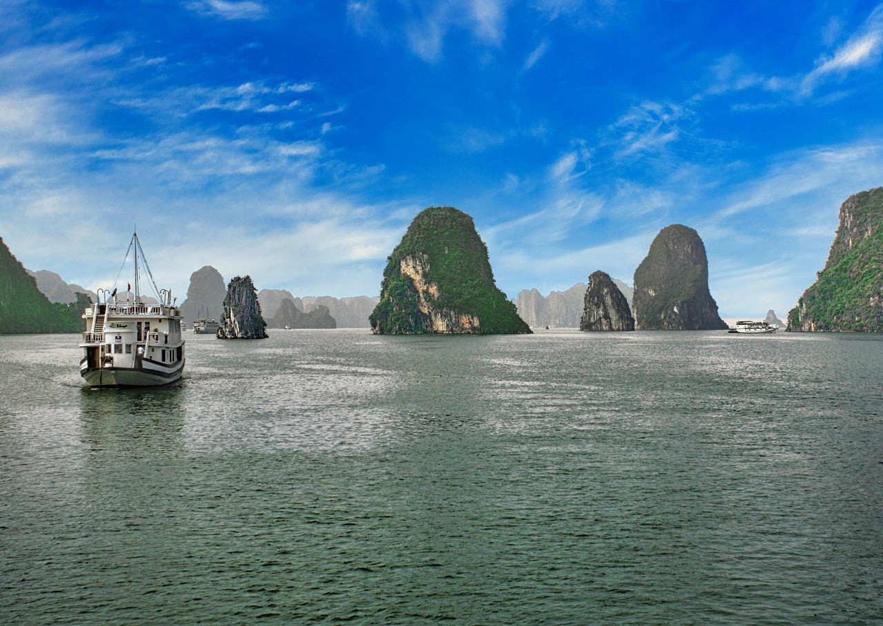 La costa norte de Vietnam guarda otro de sus grandes tesoros: la Bahía de Ha Long, declarada Patrimonio de la Humanidad por la UNESCO, con más de 1.600 islas e islotes que emergen del mar como esculturas de piedra caliza. Muy cerca, la Bahía de Lan Ha, menos concurrida pero igualmente espectacular, y el Parque Nacional de Cat Ba, con su biodiversidad, completan una región ideal para explorar en barco, en kayak o a pie.