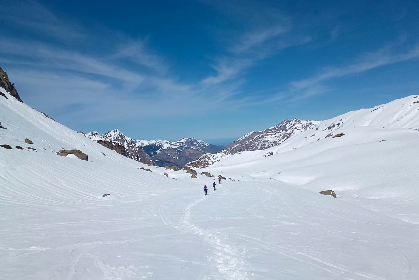 Completaremos nuestra vuelta al Midi retomando el camino recorrido la tarde anterior hasta el lago de Bious Artigues. Desde allí ascenderemos al collado de Magnabaigt para adentrarnos en el valle del mismo nombre y alcanzar posteriormente el collado de Moundelhs, rodeados por las esbeltas siluetas del Pic de Chérue y el Doigt de Moundelhs.
